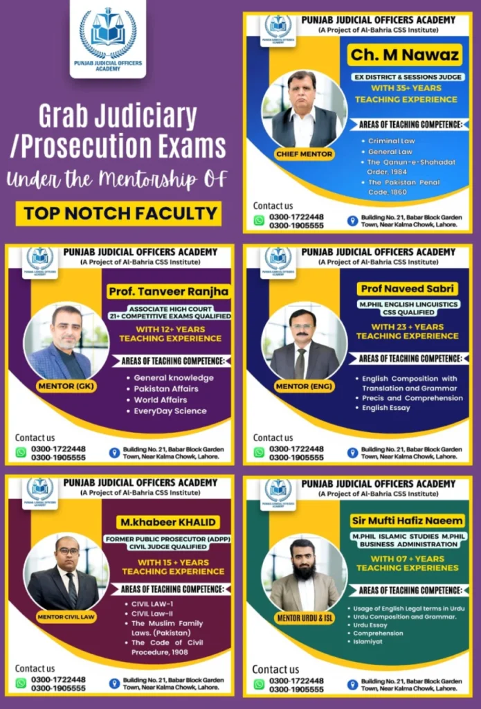 Focused preparation for Pakistan’s top legal exams—CJ, ADPP, DDPP, AD&SJ, and Law-GAT. Our structured approach helps you master every challenge.